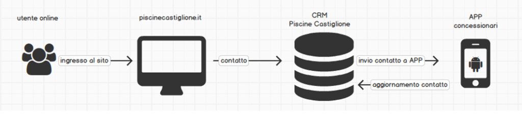 Il valore aggiunto del CRM è stato determinato dal fatto che, oltre a gestire i flussi di dati in entrata del prospect verso Piscine Castiglione, ha permesso di mappare l’intero ciclo di vita della lead dopo che questa è entrata nel circuito di vendita permettendo di capire se il prospect era stato contattato, il grado di interesse, fino alla chiusura dell’intero ciclo di vendita e il suo esito e con che importi.