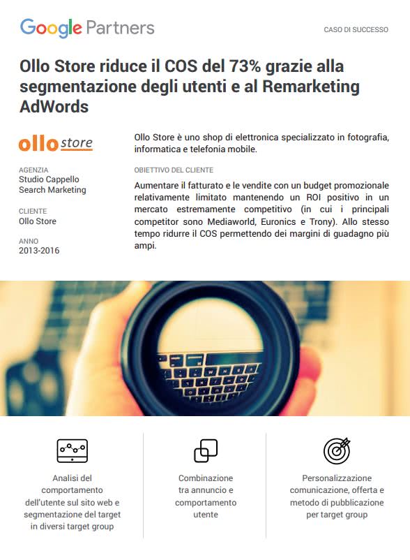 Uno dei più incredibili casi studio nel digital marketing in Italia premiato da Google. Il cliente ha decuplicato il fatturato in pochi anni con il supporto di marketing strategico e operativo di Studio Cappello.
