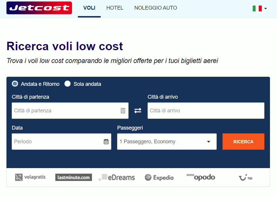 Jetcost è un metamotore di ricerca turistica leader in Europa, proprietà di Lastminute.com Group, dove si possono trovare gratuitamente la miglior soluzione low cost per un viaggio.