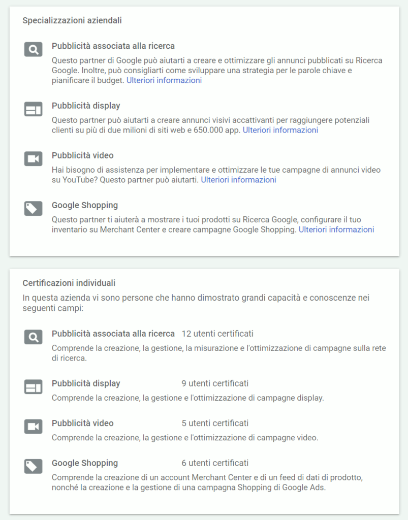 Tra le migliori all’interno della nicchia del 3% di tutte le agenzie Google Premier Partner.